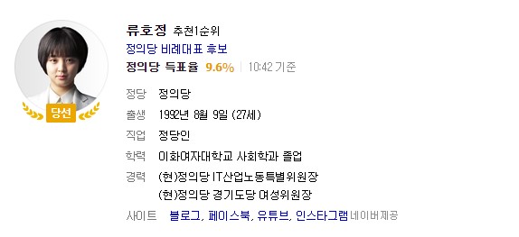 정의당은 이번 총선의 결과로 그녀가 과연 정의당의 비례대표 1번, 대표 얼굴일 자격이 있던 사람인지 심도 있게 고민해보길 바란다.
