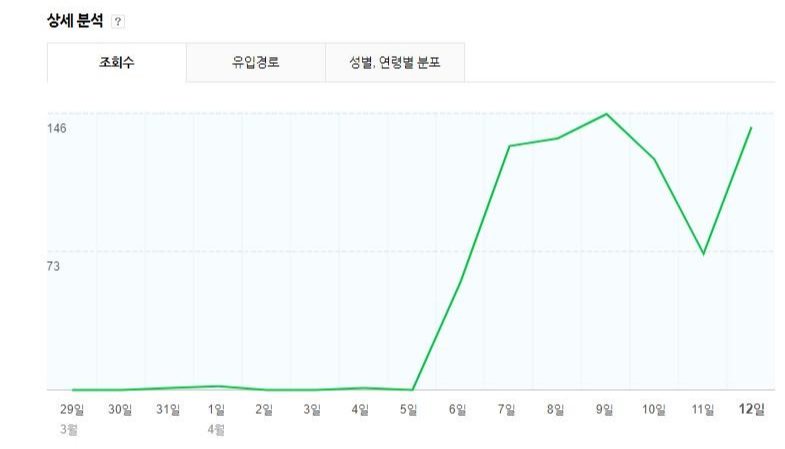 현재까지도 무난하게 계속 노출이 되고, 조회수가 꾸준함을 알 수 있다.